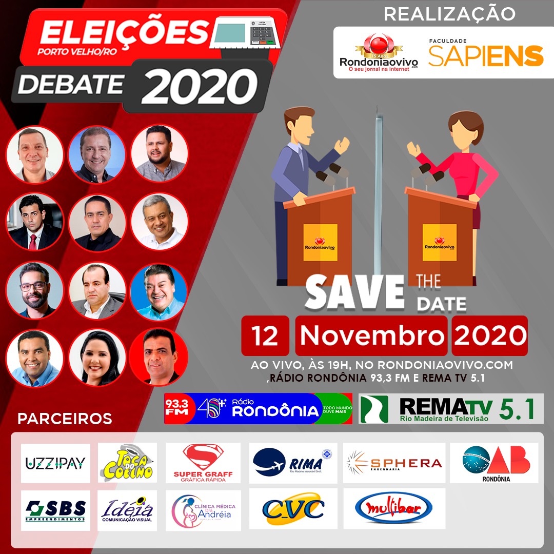 O Debate tem apoio das seguintes empresas: Uzzipay, Toca do Coelho, Super Graf, Rima, Sphera Engenharia, OAB Rondônia, SBS Empreendimentos, Ideia Comunicação Visual, Clínica Médica Andréia, CVC e Multibar. A Rádio Rondônia e a REMA TV estarão transmitindo o debate em cadeia com o Rondoniaovivo.
