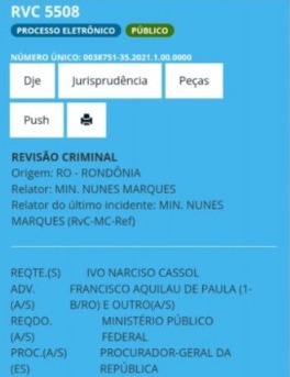 A medida aconteceu após a ministra Cármen Lúcia pedir a urgência da revisão criminal do ex-senador Ivo Cassol (PP) na ação penal 565, que foi suspensa por Nunes Marques na quinta-feira passada (04). A solicitação foi feita na sessão desta quarta-feira, no plenário.