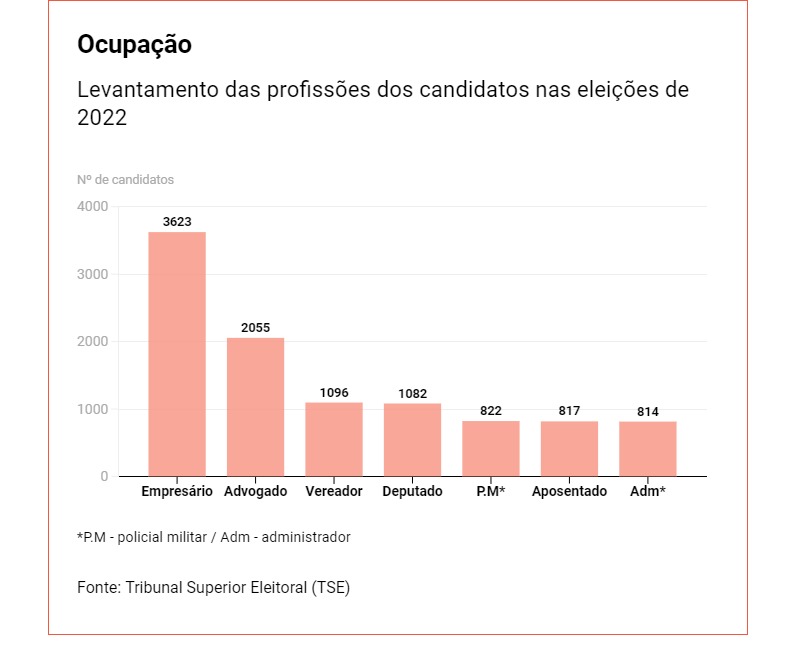 Grafico mostra grau de profissões dos candidatos | Foto: Divulgação