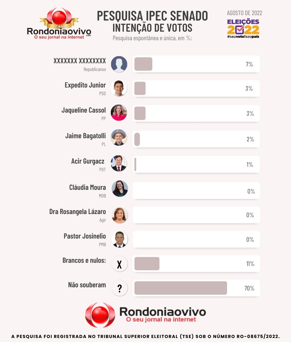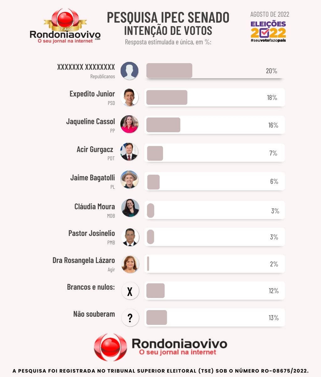 O IPEC, instituto que substituiu a marca Ibope, divulgou nesta quarta-feira (24), a primeira pesquisa com intenções de voto para o Senado Federal em Rondônia.