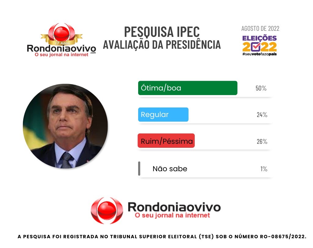A pesquisa do IPEC também perguntou como o eleitor avalia a gestão do presidente Jair Bolsonaro (PL).