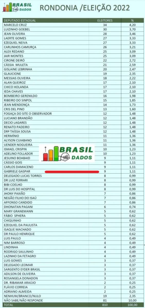 A Assembleia Legislativa de Rondônia recebe 24 deputados em todas as legislaturas. Segundo os levantamentos internos dos partidos e as de institutos de pesquisas divulgadas aos eleitores mostram que Gabriele Gaspar é a candidata da enfermagem mais bem colocada na preferência da população.