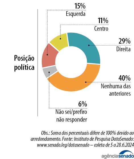 Uma pesquisa realizada este ano pelo DataSenado mostra que a maior parte da população brasileira com direito ao voto não se considera politicamente nem mais à direita, nem mais à esquerda, nem mais ao centro.