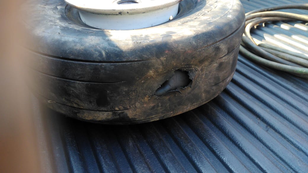 O estouro de um pneu de um avião dos bombeiros neste domingo fez com que o aeroporto tivesse que ser interditado para pouso e decolagem por mais de uma hora. Felizmente ninguém se feriu no entanto chama a atenção o estado do pneu do avião que é usado em operações e também em transporte de pacientes. Difícil imaginar que o pneu tenha sido aprovado nas vistorias obrigatórias de manutenção.