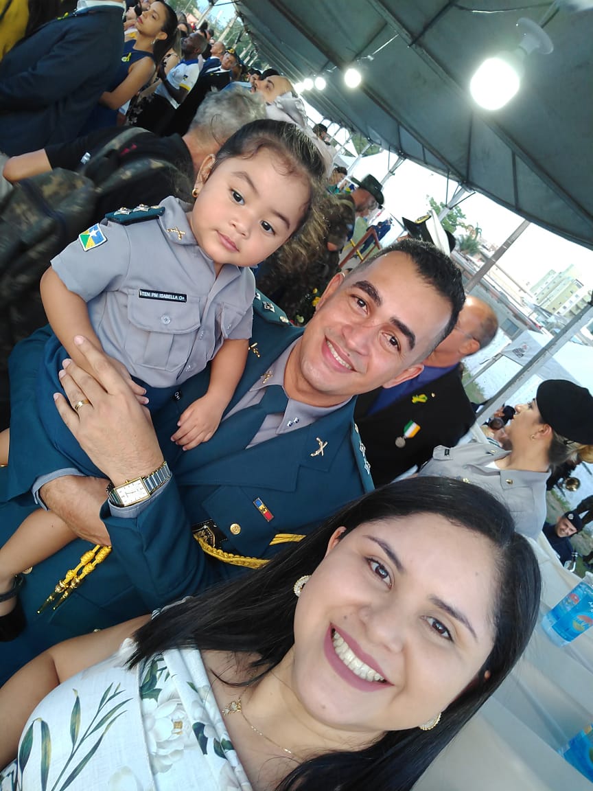 A mini tenente mirim Isabella Vitória foi uma atração extra no desfile de 07 de setembro em Porto Velho. Com 1 ano e 06 meses de idade ela não se empolgou muito para “marchar” e preferiu “comandar” a atenção dos pais, o tenente PM Alves e a mãe Vanessa Oliveira, Pedagoga do TJRO. O clic exclusivo para a coluna foi feito após um momento de “sossego” da doce Isabella que estava agitada no palanque das autoridades.
