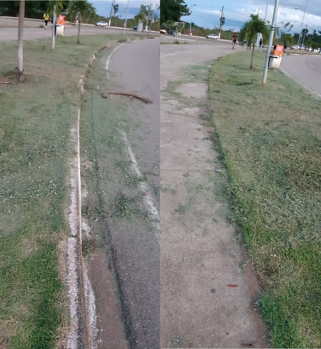 As fotos mostram como é o resultado do trabalho de equipe que atua sem comando. A grama foi cortada e a sujeira deixada de lado. Provavelmente a intenção seria aguardar uma chuva que carregue o lixo para os bueiros. Deu certo. A chuva chegou pra valer desde às 5h15 da manhã desta sexta-feira.
