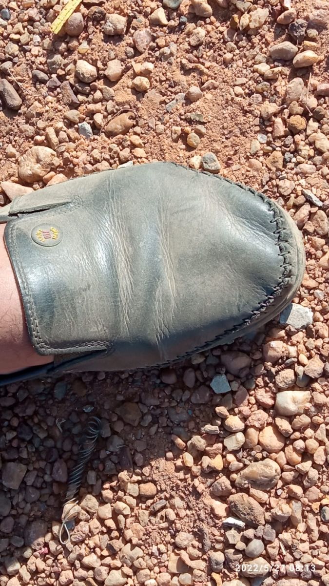 A foto em destaque mostra como meu sapato preto fica ao caminhar diariamente pelo chão empoeirado do parque.