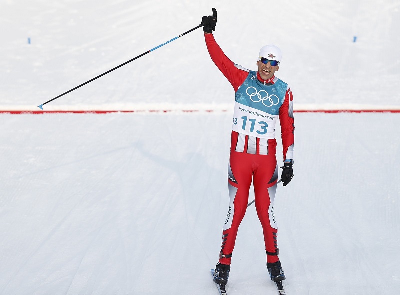 Pita Taufatofua é de Tonga e ficou conhecido na Rio 2016 ao desfilar na cerimônia de abertura com o corpo coberto por óleo. Ele era lutador de taekwondo e há um ano e meio resolveu se aventurar. Aprendeu a esquiar e se classificou para a Olimpíada de PyeongChang. Pita sofreu para completar a prova mas foi o centro das atenções. Ficou em 114º.