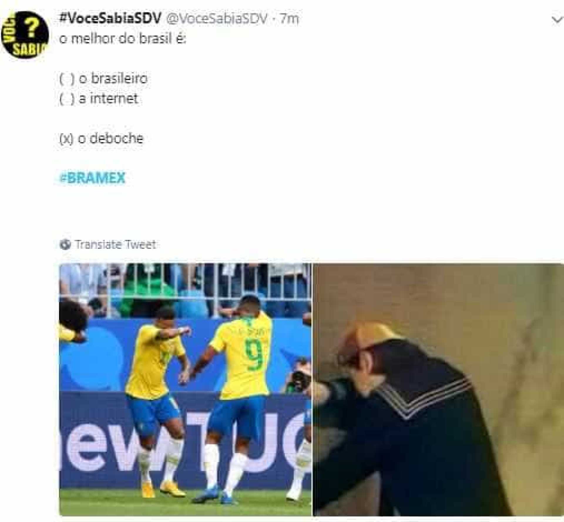 O jogo começou tenso e com poucas chances para o Brasil. Os gols só vieram na segunda etapa da partida, o que deixou os torcedores bastante nervosos. Nas redes sociais, os internautas extravasaram o nervosismo com bastante bom humor. Desde piadas com o popular seriado mexicano Chaves, até um torcedor brasileiro que chamou a atenção e recebeu o apelido de 'psicopata do Hexa', veja os melhores memes da vitória brasileira sobre o México.