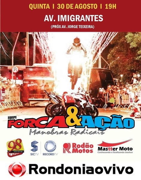 A Equipe Força e Ação realizará, na próxima quinta-feira (30), uma apresentação de manobras radicais com motos, na Avenida dos Imigrantes, próximo a Jorge Teixeira, às 19 horas. A entrada é franca.