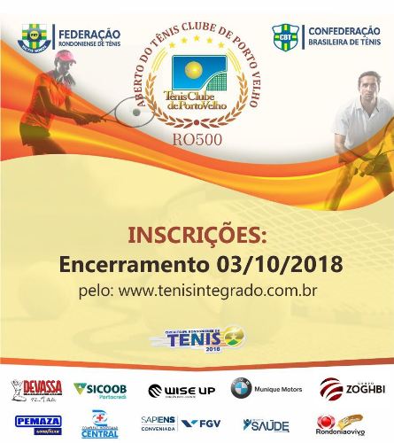 Encerram hoje as inscrições para o Aberto de Tênis Clube, realizado pela Federação Rondoniense de Tênis e Tênis Clube de Porto Velho. O torneio tem início na próxima segunda-feira (08) e segue até domingo (14). As inscrições podem ser feitas pelo site www.tenisintegrado.com.br.