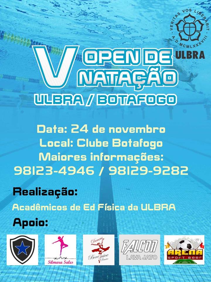 Chega a sua quinta edição o Open de Natação realizado pela unidade de Porto Velho da Universidade Luterana do Brasil (Ulbra) com o Clube Botafogo. O evento acontece no próximo dia 24 de novembro, e será organizado pelos acadêmicos do Curso de Educação Física da Instituição de Ensino Superior.