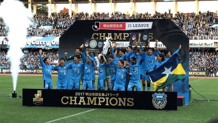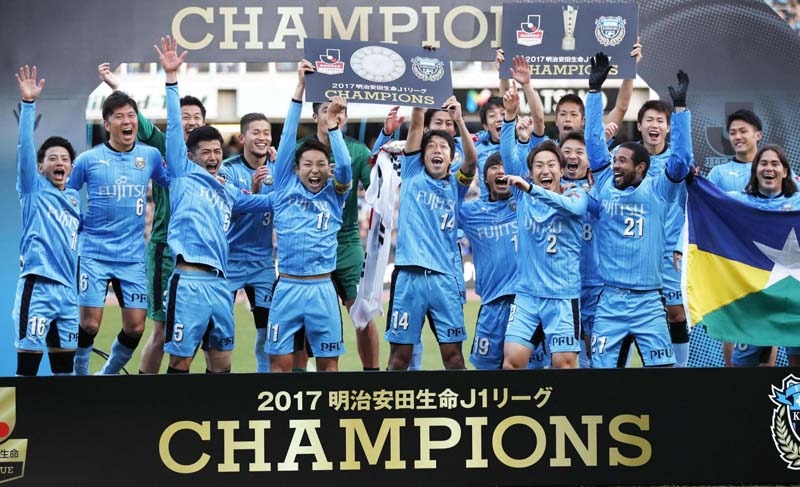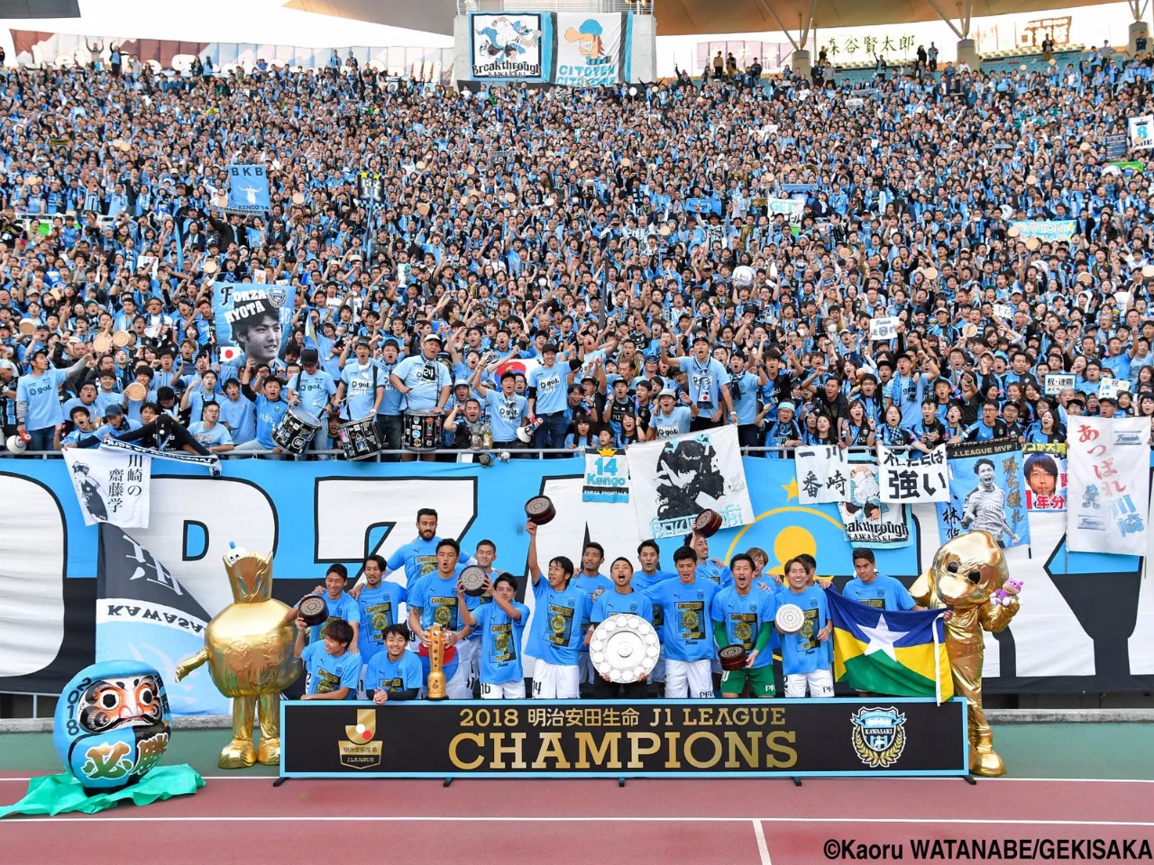 No último minuto, Yamamura surpreendeu e deu a vitória ao Cerezo por 2x1, o que não estragou a festa dos visitantes. Apesar de ter perdido uma invencibilidade de sete jogos, o Kawasaki sagrou-se campeão. Desde a conquista do Sanfrecce Hiroshima em 2012, um título da J1 não era decidido de forma antecipada. Coube ao zagueiro Shogo Taniguchi a honra de levantar o troféu primeiro (foto acima), já que o capitão Yu Kobayashi estava lesionado e só assistiu ao jogo das tribunas.