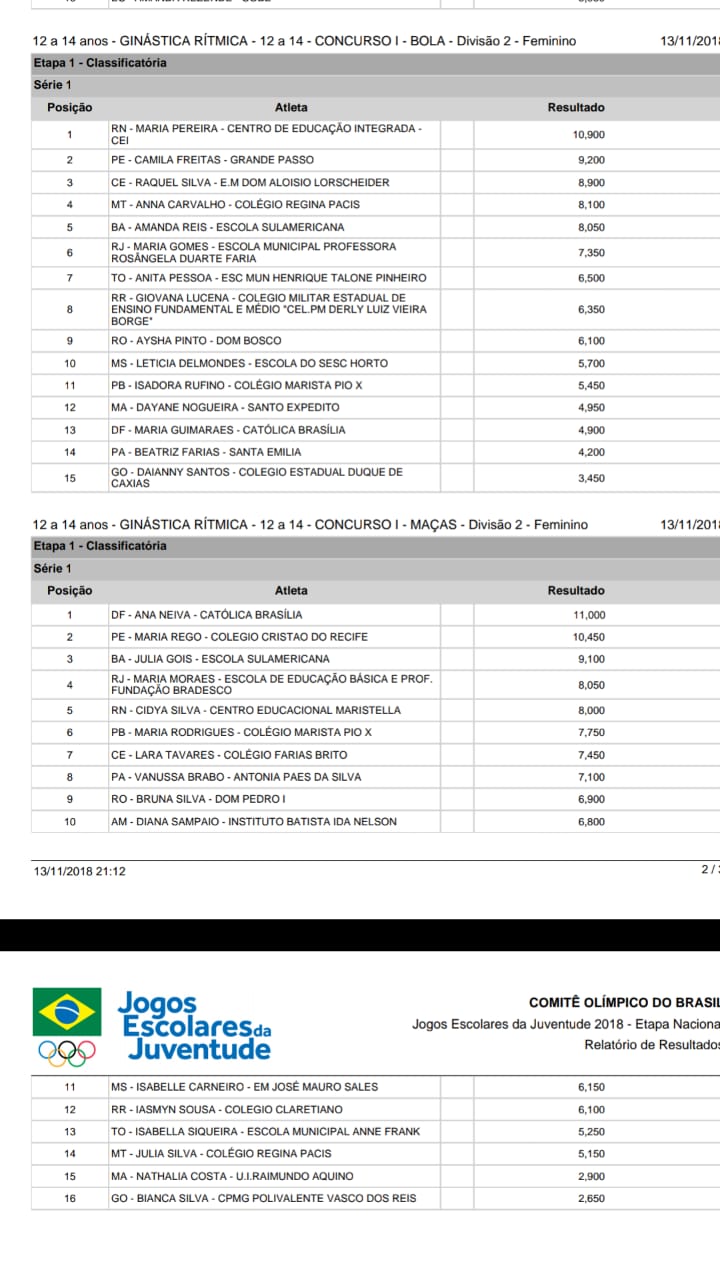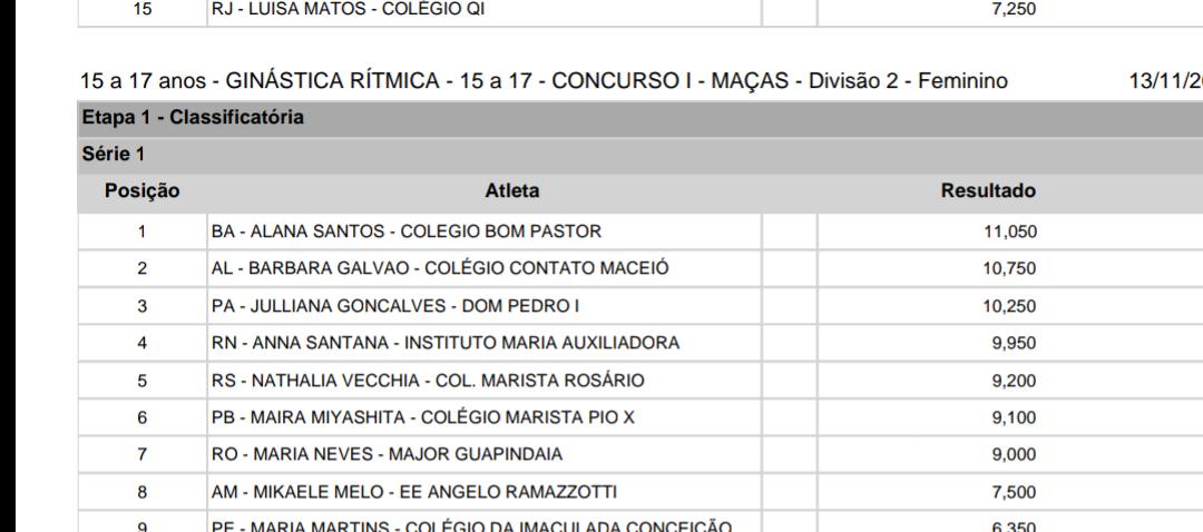 Nota de Maria Eduarda "Duda" no primeiro dia de competição