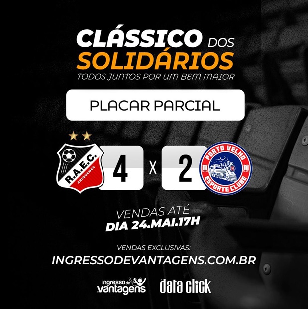 FUTEBOL DO NORTE - Com os campeonatos paralisados devido a pandemia do Coronavírus (Covid-19), Real Ariquemes e Porto Velho travam até domingo (24/05) o Clássico dos Solidários - duelo de vendas online de ingressos em uma campanha de arrecadação de fundos e que conta com apoio da Data Click.