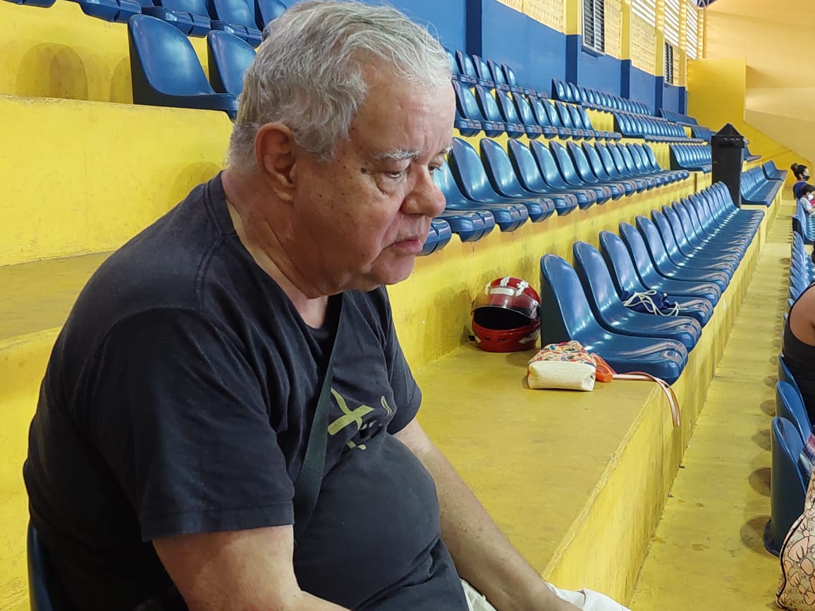 Quem também marca presença durante os treinos de vôlei é o aposentado Pedro Queiroz, avô da Carmélia Rafaela, de 11 anos, que confessou passar o tempo lendo e tirando um cochilo na arquibancada durante os treinos da neta.