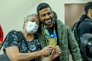 Maria Augusta, mãe do lutador Caio Marco, aguardava ansiosamente pela chegada de seu filho com a medalha conquistada no torneio, no saguão do aeroporto de Porto Velho. “Eu fico feliz quando ele volta, muito feliz. E para você saber, eu só assisti uma luta do Caio quando ele tinha oito anos, e foi Judô”.
