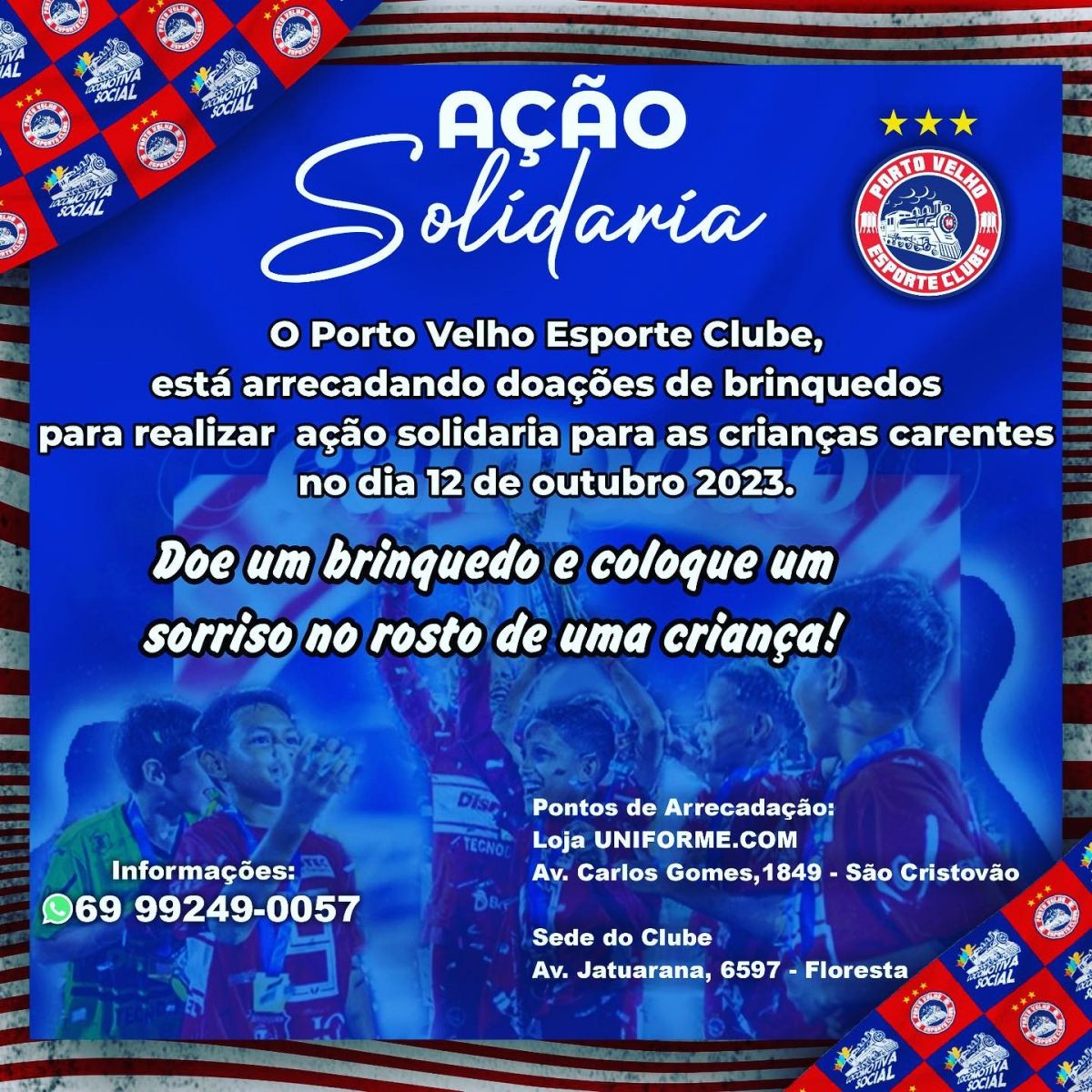 Com o objetivo de levar alegria e sorrisos aos rostos das crianças menos favorecidas, o Porto Velho Esporte Clube convida toda a comunidade a participar dessa nobre iniciativa. A ação solidária ocorrerá no dia 12 de outubro, Dia das Crianças, e visa tornar essa data tão significativa em um momento inesquecível para aqueles que vivem em condições de vulnerabilidade social.