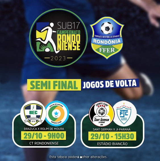 A grande final do Campeonato Rondoniense Sub-17 está prevista para acontecer nos dias (2) e (5) de novembro. O campeão garante vaga na Copa do Brasil 2024.