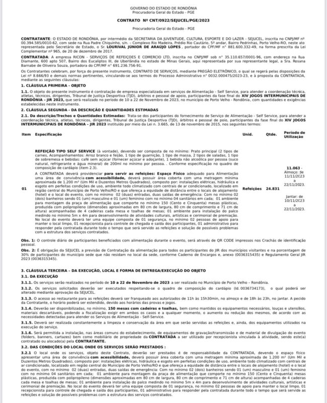 Todas as contratações ligadas aos Jogos Intermunicipais de Rondônia seguiram a legislação vigente, priorizando a melhor qualidade dos serviços e a segurança.