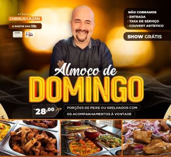 Às 12h, apresentação de Charlis Kacaz durante o almoço promocional, onde a refeição custa apenas R$ 28.00.
