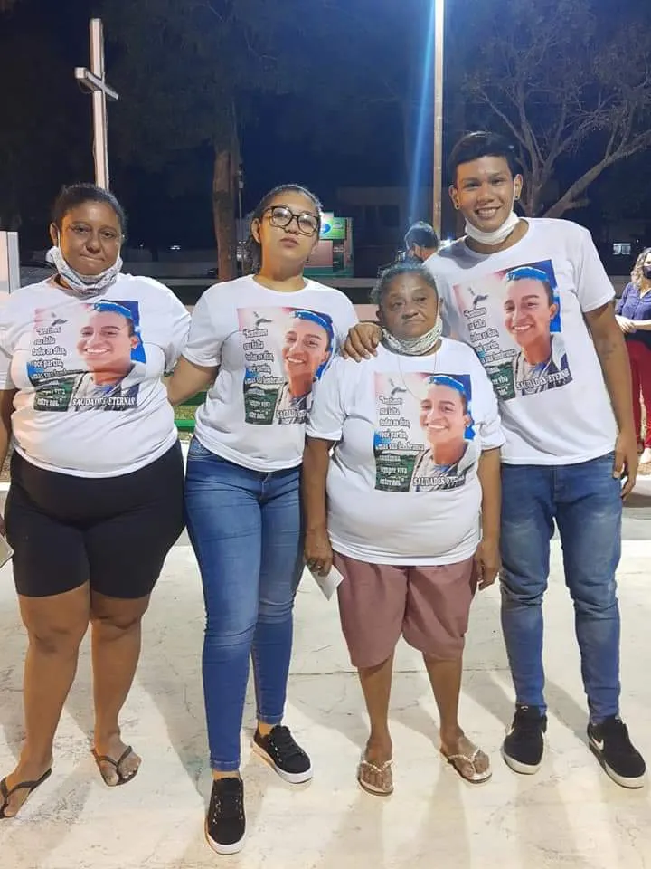 Rudvan (dir) com a família, usando camisetas em homenagem ao irmão - Foto: Divulgação/ Arquivo pessoal