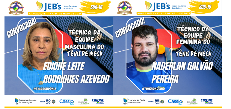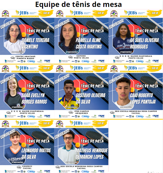 É com grande satisfação que apresentamos mais uma equipe de destaque que representará Rondônia nos Jogos Escolares Brasileiros Sub 18, que ocorrerão em Aracaju, Sergipe, de 17 a 25 de maio. Desta vez, é a equipe de tênis de mesa que está pronta para enfrentar essa emocionante competição.
