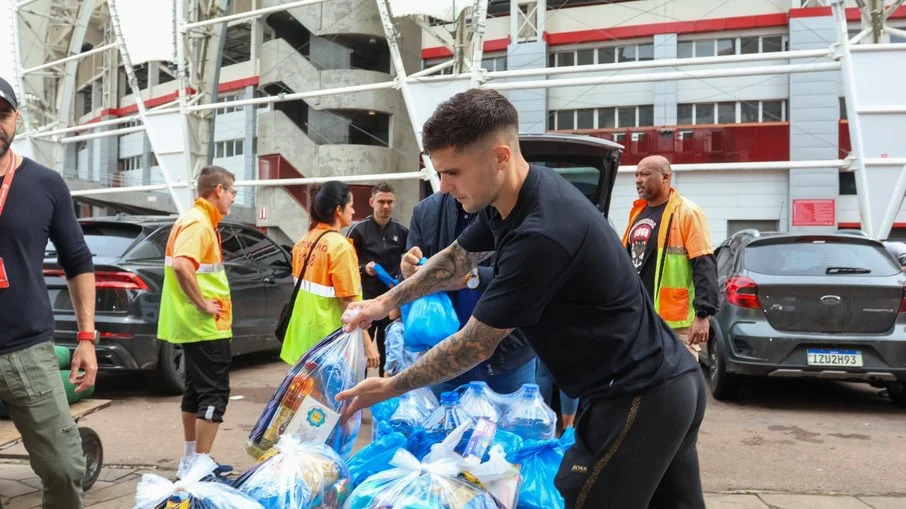Jogadores de futebol do Rio Grande do Sul se mobilizam para realizar doações em solidariedade das vítimas afetadas pelas chuvas - Foto: Divulgação