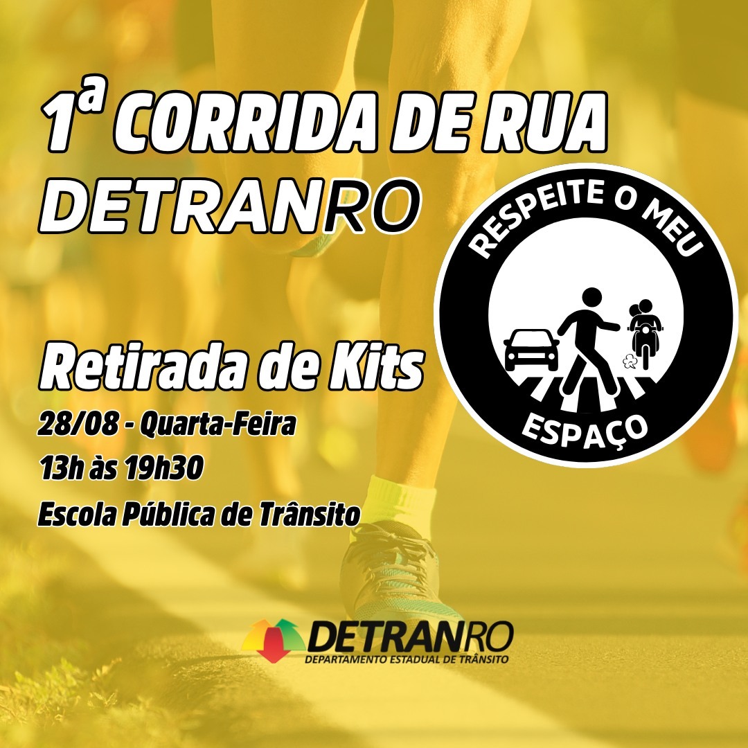 Os participantes da 1ª Corrida de Rua do Detran Rondônia devem retirar seus kits nesta quarta-feira (28), das 13h às 19h30, na Escola Pública de Trânsito, localizada na Rua Padre Chiquinho, 913, bairro Pedrinhas, em Porto Velho.