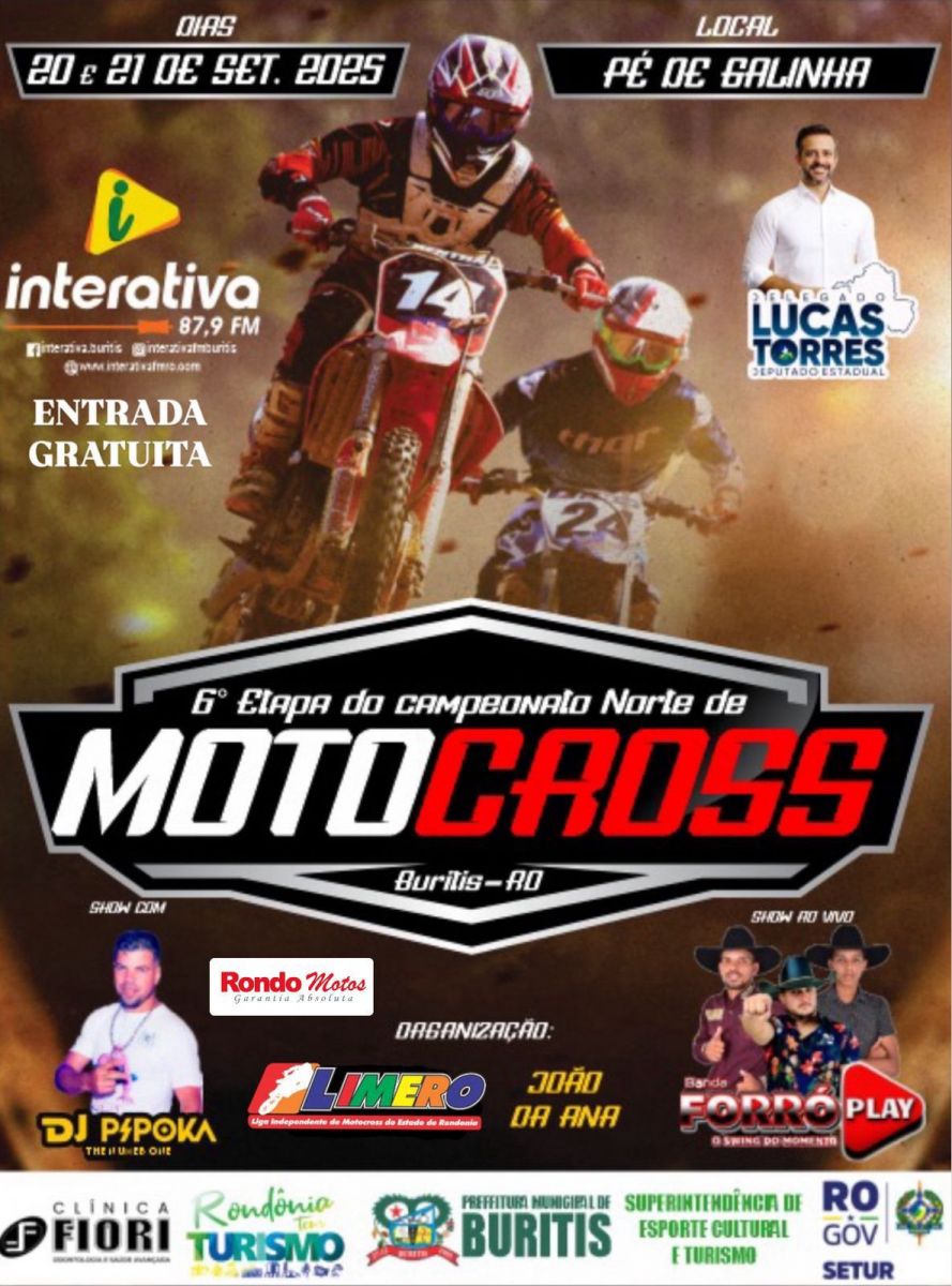 Nesse próximo final de semana, nos dias (20) e (21), o município de Buritis vai receber a 6ª Etapa e Final do Regional Norte de Motocross de Rondônia desse ano de 2025.