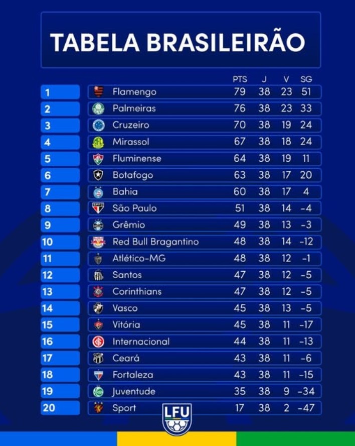Com o fim da temporada, o Brasileirão 2025 deixa marcado o domínio rubro-negro, a ascensão de clubes emergentes como o Mirassol e o drama vivido no futebol nordestino com as quedas de Ceará e Fortaleza. A expectativa agora se volta para os ajustes das equipes e o início das competições continentais e nacionais de 2026.