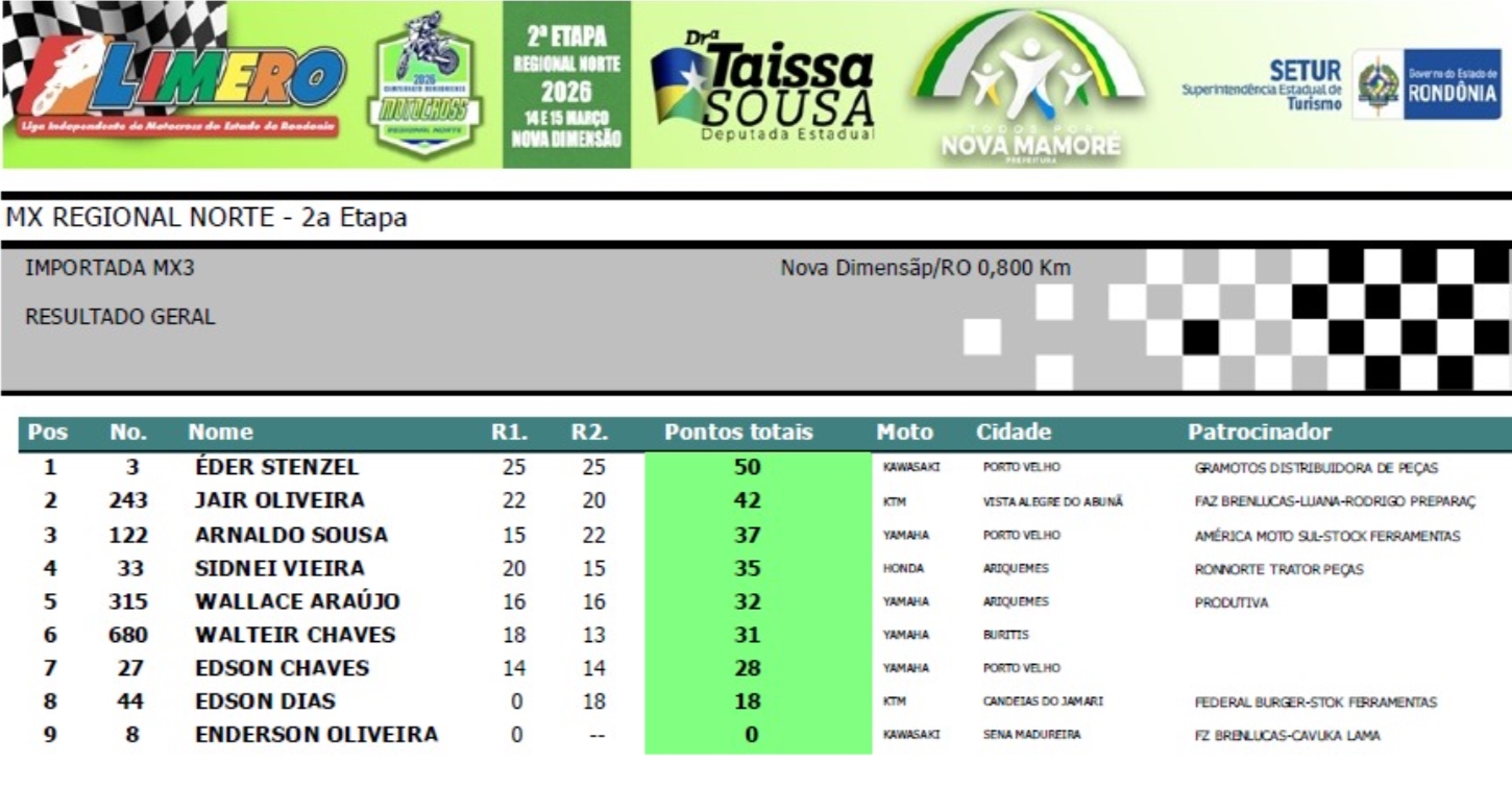 Mais uma etapa com domínio absoluto do piloto de Porto Velho, Eder Stenzel (#3), com vitória nas duas baterias disputadas, garantindo o primeiro lugar na etapa e a liderança isolada no regional norte 2026.