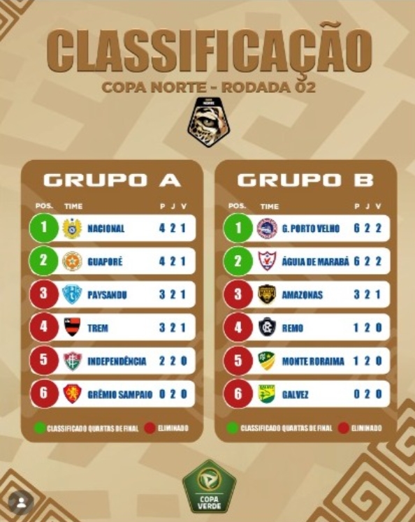 Os representantes de Rondônia encerraram a segunda rodada da Copa Verde no topo das tabelas, consolidando um início de campanha acima da média na competição.