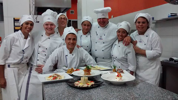 Estão sendo oferecidos dois cursos de gastronomia profissional para adultos e um para crianças, na faixa etária dos 8 aos 15 anos