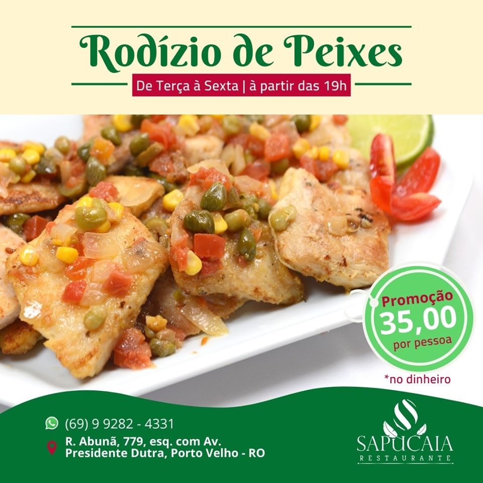 - Rodízio de peixe de terça a sexta R$ 35,00 por pessoa (para o jantar).