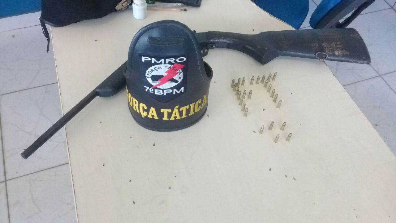 Três pessoas foram detidas e armamento de grosso calibre foi apreendido e estão sendo conduzidos para Ariquemes onde serão apresentados na Delegacia de Polícia Civil. Esta área faz parte da grande região do Vale do Jamari que têm sofrido constantes conflitos agrários nos últimos meses.