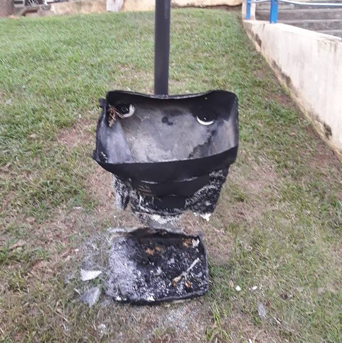 “Para evitar que praças e ruas sejam tomadas pela sujeira, a Semusb instalou diversas lixeiras, mas elas têm sido alvo do vandalismo, sendo queimadas, quebradas e até arrancadas”, lamentou Hildon Chaves.