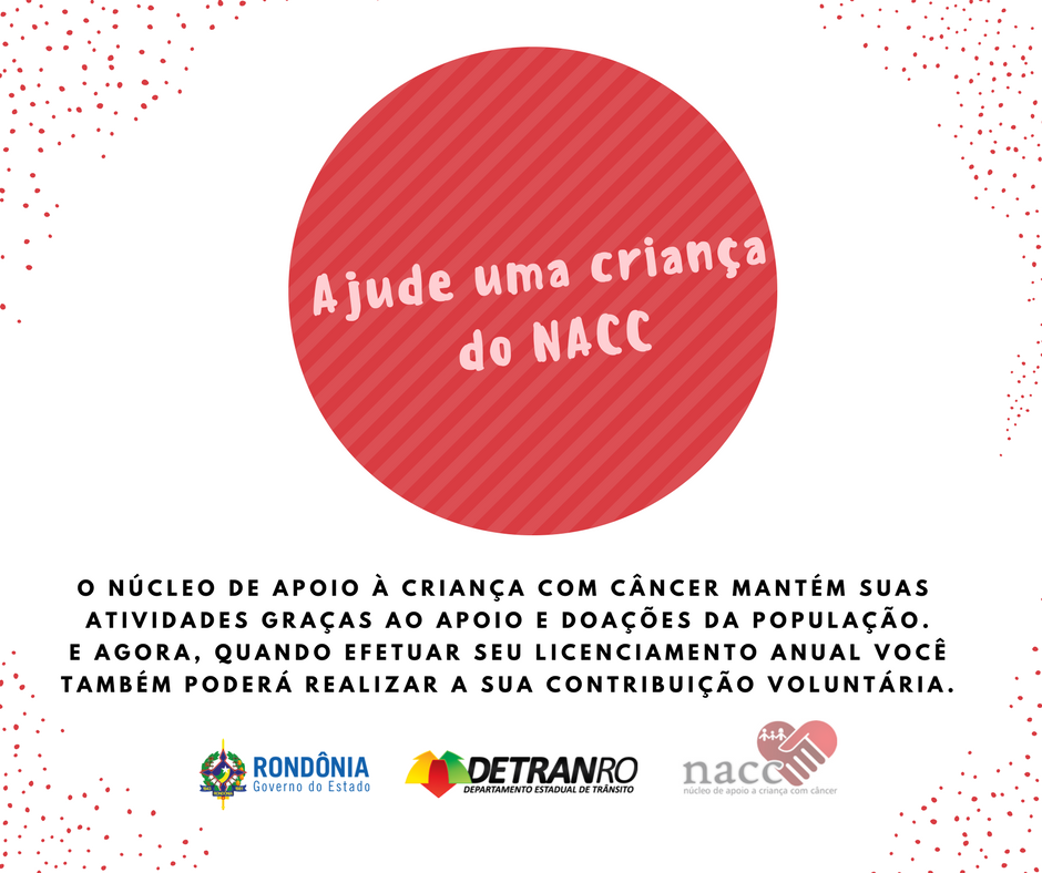 A Lei nº 4.050 de maio de 2017, aprovada pela assembleia Legislativa e sanciona pelo governo de Rondônia, onde autoriza o Departamento Estadual de Trânsito (Detran) a expedir, juntamente com as obrigações financeiras e encargos legais do licenciamento anual obrigatório dos veículos automotores, boleto de contribuição social voluntária destinada ao Núcleo de Apoio à Criança com Câncer (Naac).