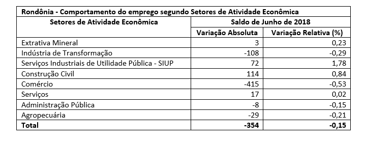 O mês de junho encerra com saldo negativo no emprego formal em Rondônia. Foram fechadas -354 vagas, resultado de 7.493 admissões e 7.847 desligamentos. A diferença representou uma variação -0,15% no número de empregos em relação ao mês de maio. Os dados estão no Cadastro Geral de Empregados e Desempregados (Caged) divulgado pelo Ministério do Trabalho.
