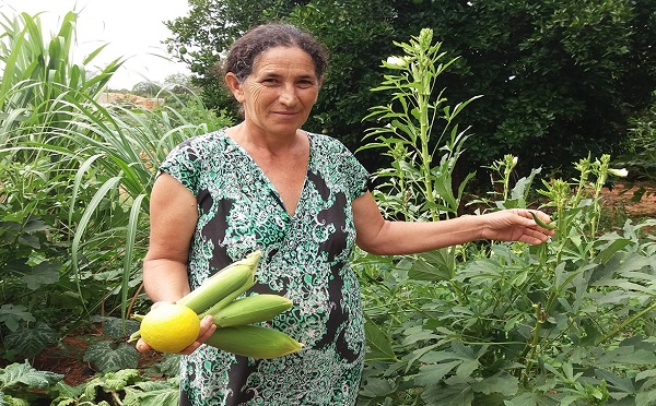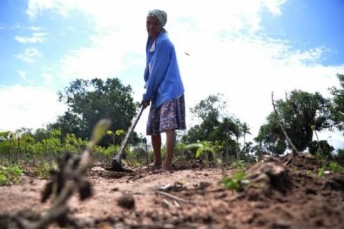 (Dona Iracema ainda cuida da plantação mas ficou sem a terra e sem o dinheiro)