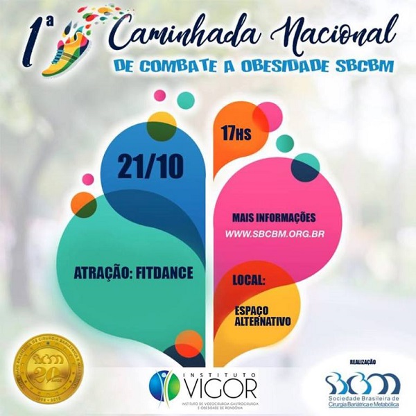 O Instituto Vigor realiza neste domingo,21, às 17 horas, no Espaço Alternativo de Porto Velho, a I Caminhada Nacional de Combate à Obesidade. A concentração será em frente à passarela. As camisetas podem ser adquiridas, gratuitamente, até as 12 horas deste sábado,20, no Instituto Vigor, na rua Elias Gorayeb, 2746 – São Cristóvão, subesquina com a Carlos Gomes. O evento já tem mais de 200 inscritos. Informações (69) 9.8471-3872.