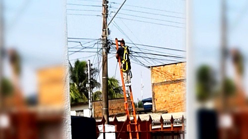 Em uma foto, enviada a nossa redação por um ex-funcionário da empresa, o colega de trabalho registrou o momento em que o funcionário se arrisca em cima do poste sem o Equipamento de Proteção Individual (EPI).
