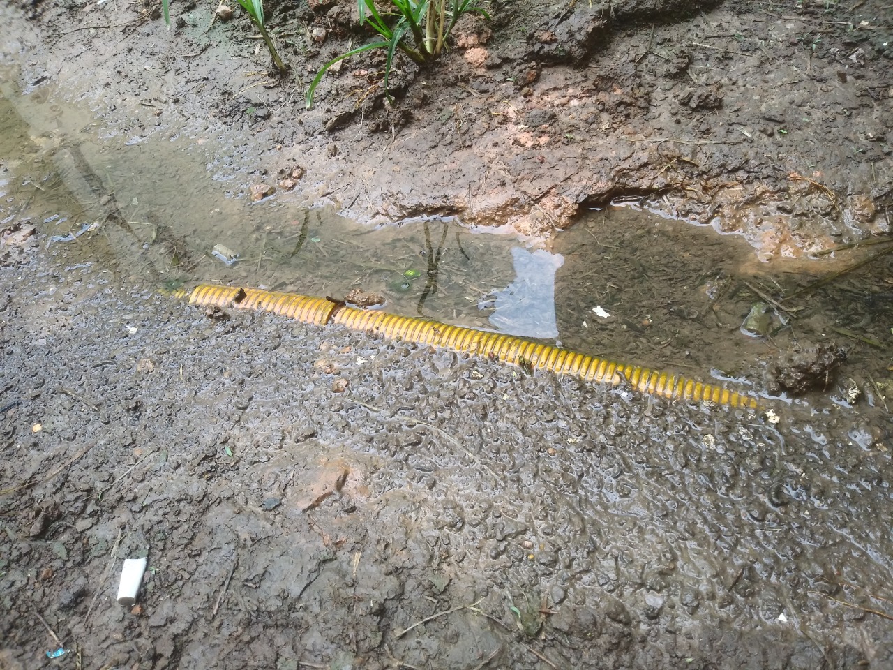 Junto com o alagamento decorrente dos vazamento o chorume se mistura com a lama