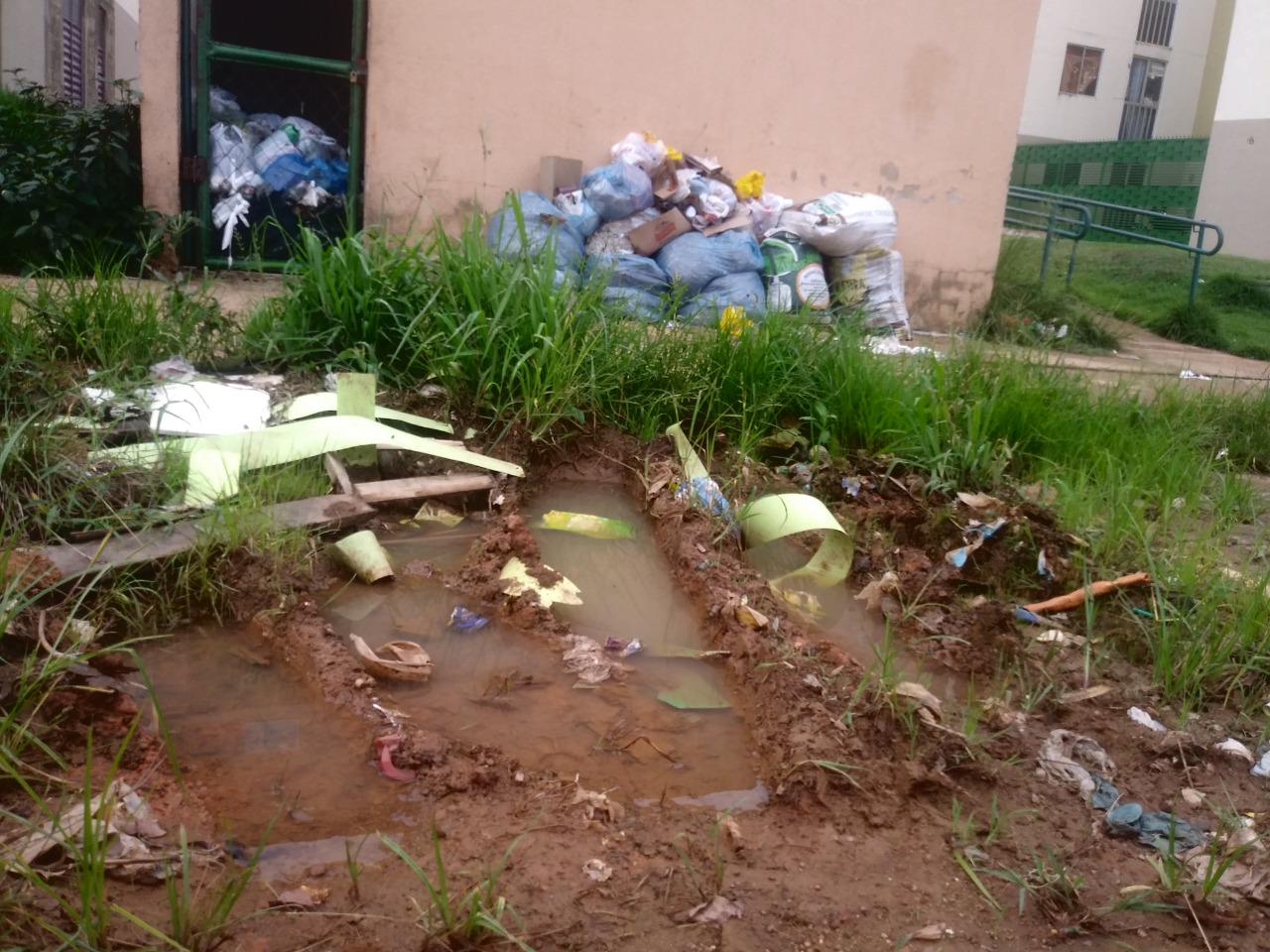 Outra reclamação dos moradores é a falta da coleta de lixo. Sacolas e mais sacolas se acumulam, o caminhão da Empresa responsável pela coleta a 'Marquise' nem passa pelo local, segundo um morador. A região de estacionamento virou um atoleiro e os motoristas nem passam mais pelo local, informa Isaias Inácio.