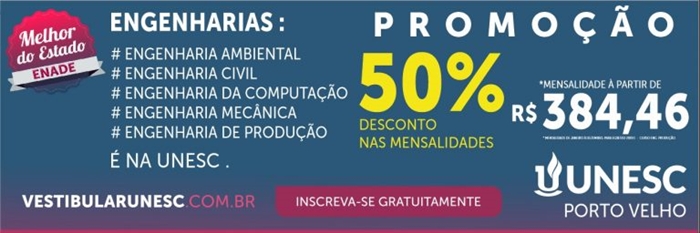 Durante todo o ano de 2019, os estudantes que ingressarem nos cursos de Engenharia oferecidos pela Unesc, em Porto Velho, terão direito a 50% de descontos nas mensalidades.