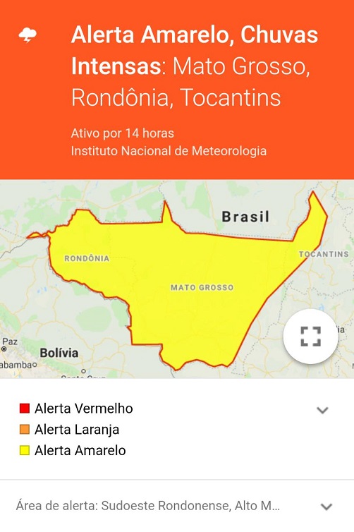 Já o INMET, publicou aviso iniciando em: 29/01/2019 12:29. Chuva entre 20 e 30 mm/h ou até 50 mm/dia, ventos intensos (40-60 Km/h). Baixo risco de corte de energia elétrica, queda de galhos de árvores, alagamentos e de descargas elétricas.