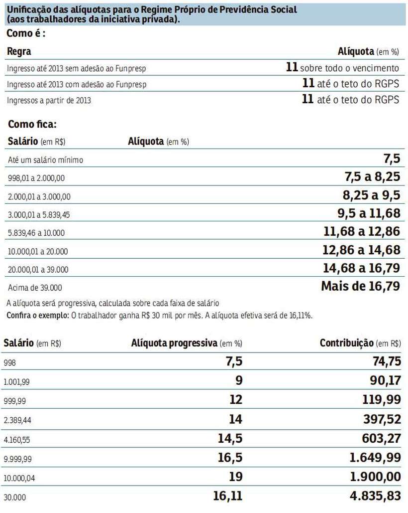 O governo federal propôs a mudança nas alíquotas de contribuição para os servidores