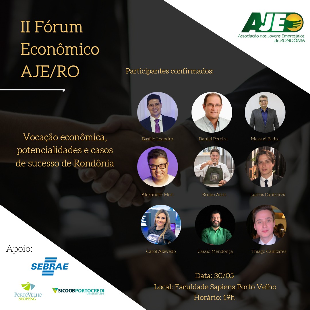 O Estado de Rondônia tem grandes oportunidades econômicas em diversos ramos e é exatamente demonstrar quais as áreas de maior destaque o objetivo do II Fórum econômico organizado pela Associação de Jovens Empresários de Rondônia - AJE/RO.