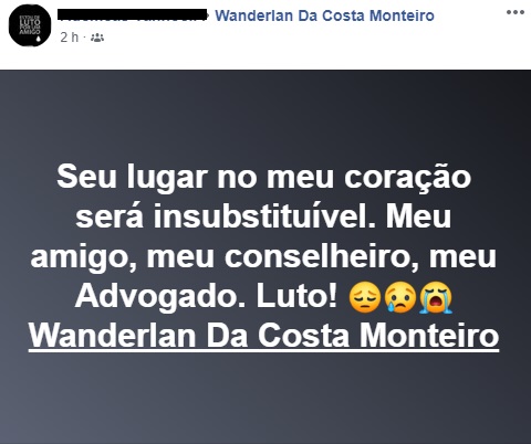 A morte prematura do advogado e professor universitário Wanderlan Costa Monteiro, 35 anos, na última segunda-feira(28), causou grande comoção nas redes sociais. Ele era muito conhecido entre profissionais e acadêmicos de Direito que fizeram várias postagens expressando sentimento de pesar.