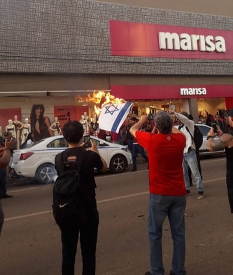 MOVIMENTO DE ESTUDANTES REVOLUCIONÁRIOS QUEIMA BANDEIRAS DOS ESTADOS UNIDOS E DO ESTADO DE ISRAEL.